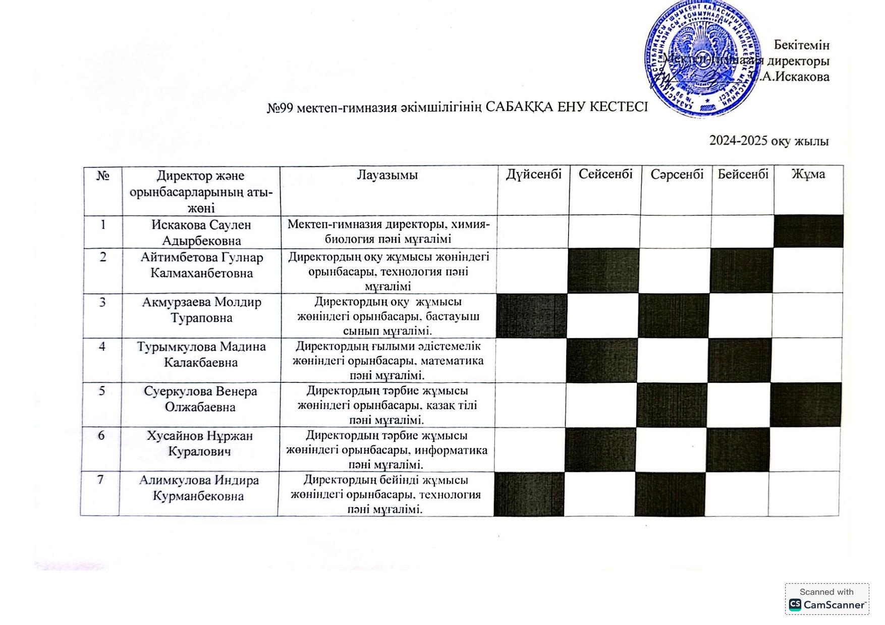 16 январь 2024 0 1 2 3 4 5 Әкімшіліктің сабаққа ену кестесі 2024-2025 жылы әкімшілігінің сабаққа ену кестесі2023-2024 жылы әкімшілігінің сабаққа ену кестесі2022-2023 жылы әкімшілігінің сабаққа ену кестесі