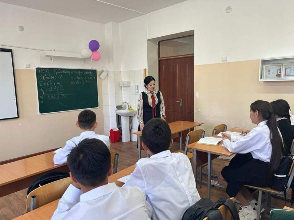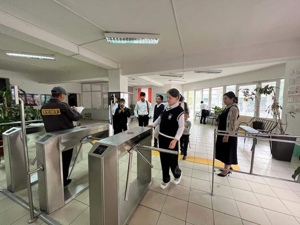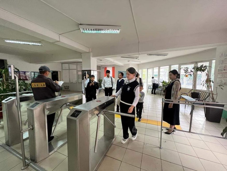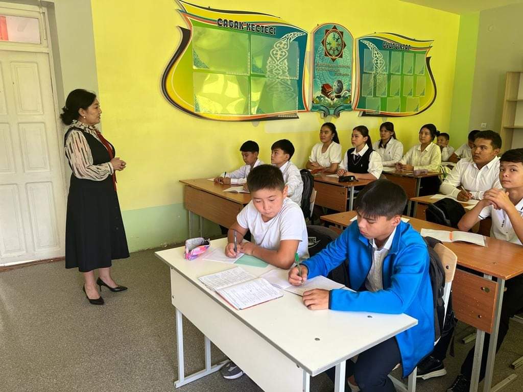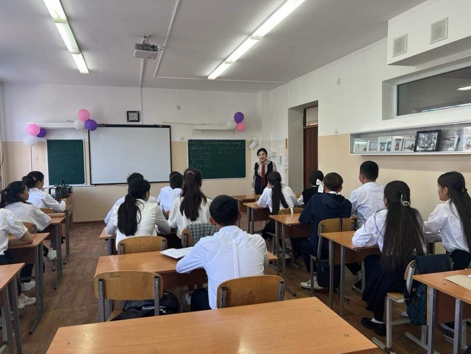 Искакова Саулен Адырбекқызы барлық оқушыларды мектептің кіре беріс есігінен қабылдап алды.