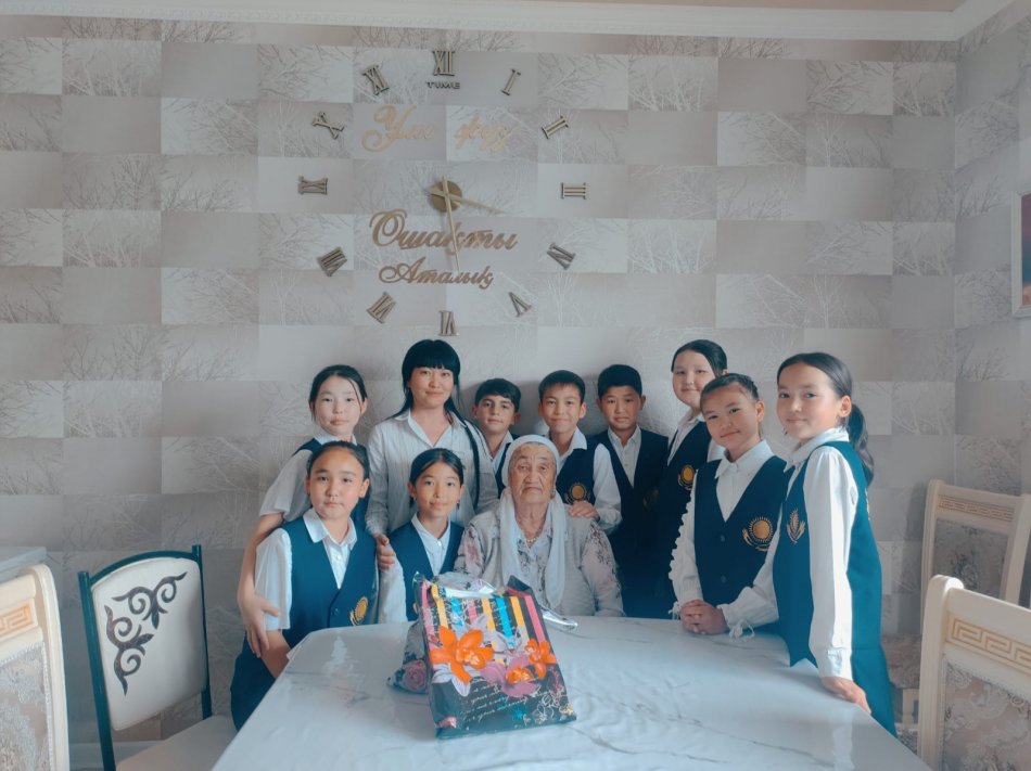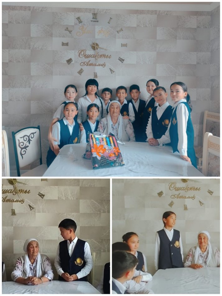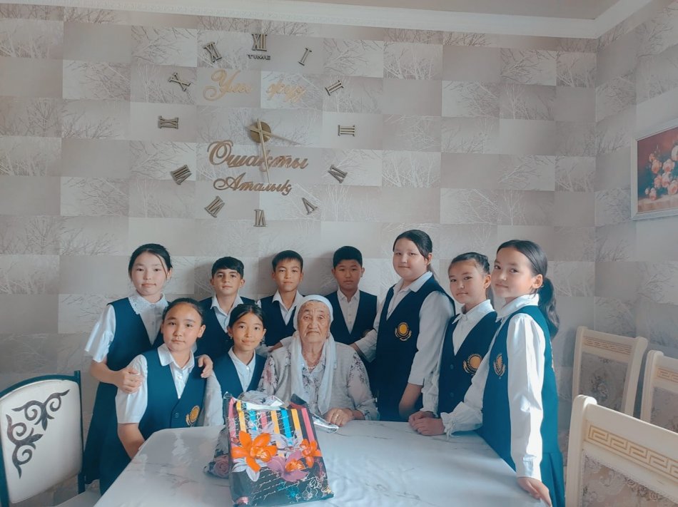 10.05.2024ж күні Шымкент қаласы білім басқармасына қарасты 99 мектеп-гимназиясының еріктілері "Мамыр - Ынтымақ айы" қарасыңында Қарабастау тұрғын алабында тұратын тыл еңбек ардагері Қайназарова Өрік апаның үйіне барып, мерекемен құттықтап, өздерінің тілектерін, өлең шумақтарын айтып құттықтау іс шарасы өткізілді.