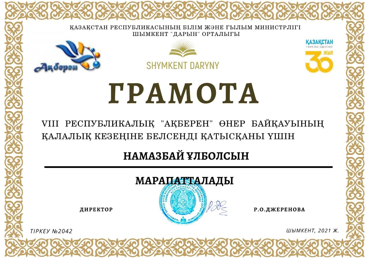 № орны | Халықаралық | Республикалық | Облыстық | Қалалық | Интернет олимпиадалар | Дарынды балалар (саны) | ||||||||||||