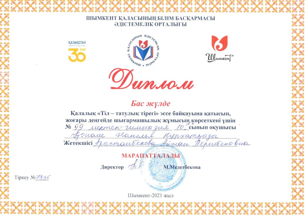№99 мектеп-гимназиясының 2020-2021 оқу жылындағы оқушыларының әр түрлі байқауларға қатысқаны және нәтижесі туралы мәлімет ( II жарты жылдық бойынша)